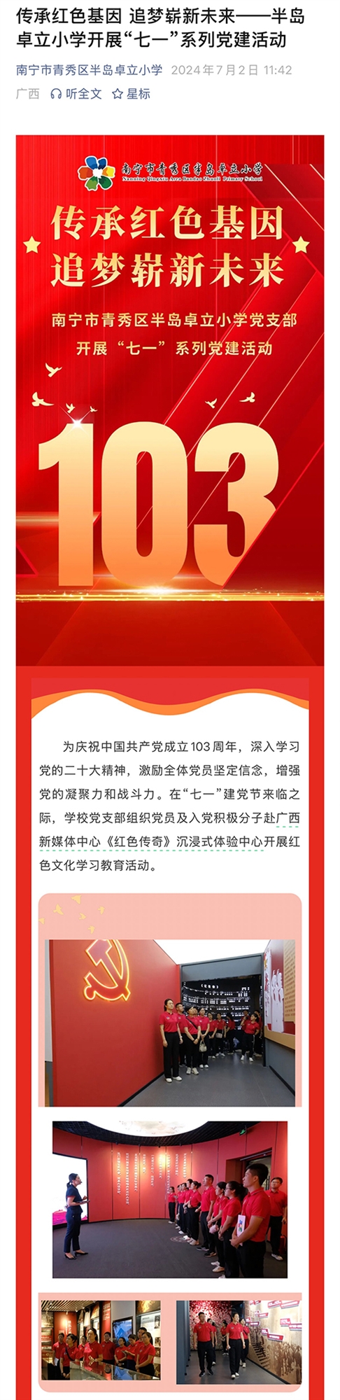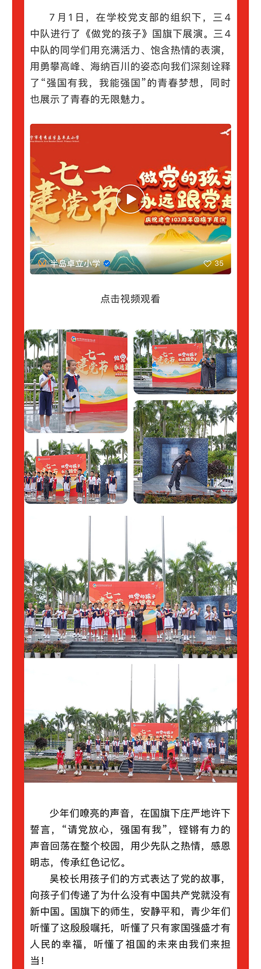 传承红色基因追梦崭新未来一半岛卓立小学开展“七一”系列党建活动