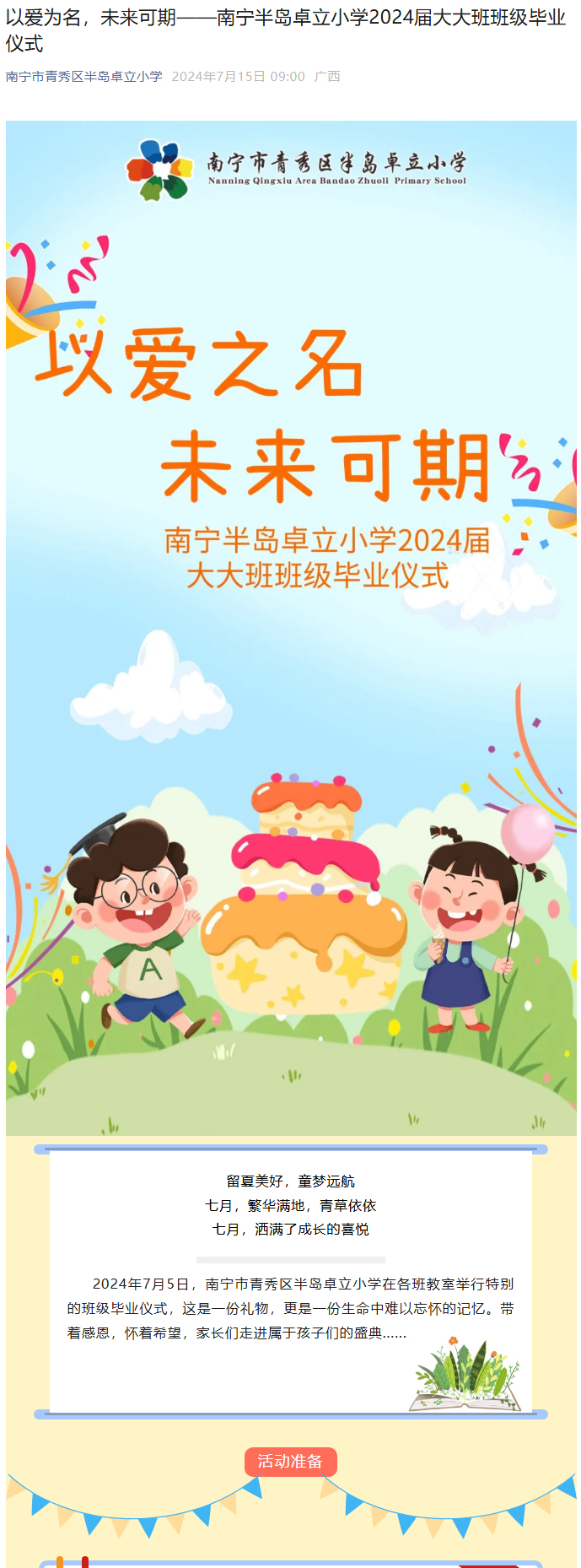 以爱为名,未来可期——南宁半岛卓立小学2024届大大班班级毕业仪式