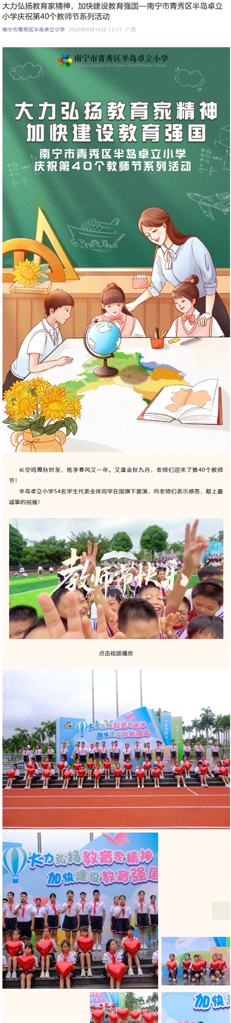大力弘扬教育家精神,加快建设教育强国—南宁市青秀区半岛卓立小学庆祝第40个教师节系列活动