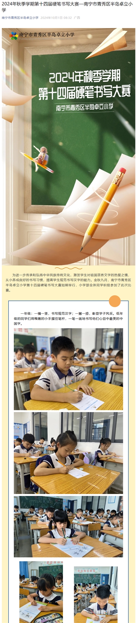 2024年秋季学期第十四届硬笔书写大赛—南宁市青秀区半岛卓立小学