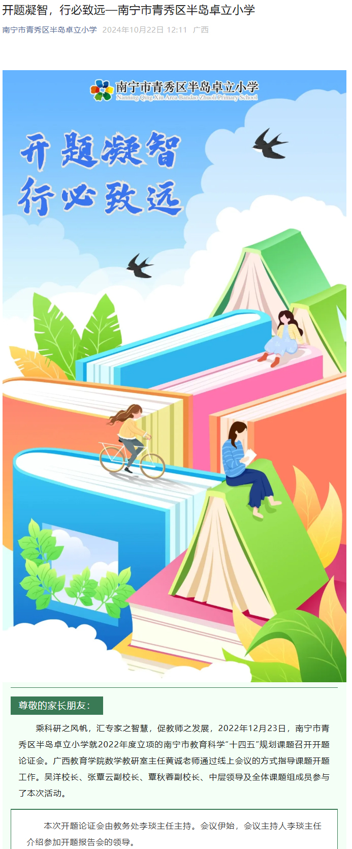 开题凝智,行必致远—南宁市青秀区半岛卓立小学