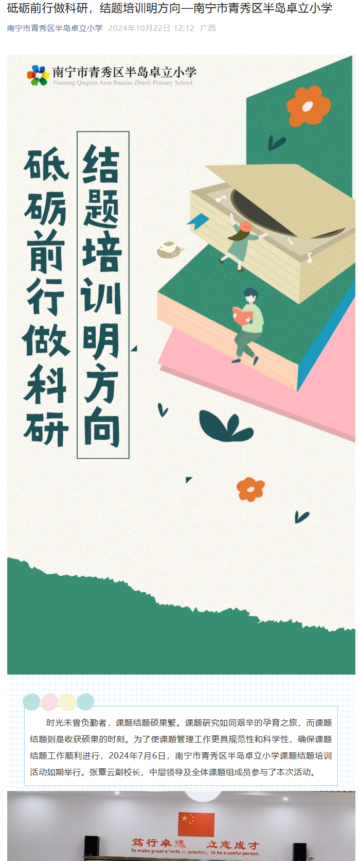砥砺前行做科研,结题培训明方向—南宁市青秀区半岛卓立小学
