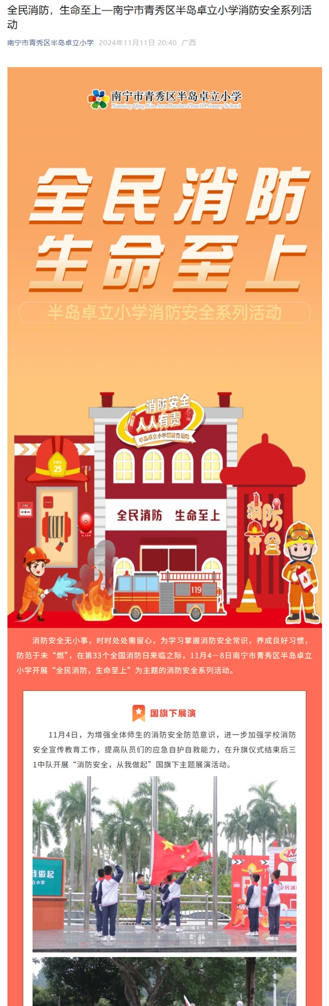 全民消防,生命至上—南宁市青秀区半岛卓立小学消防安全系列活动