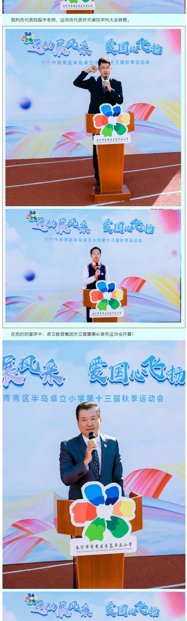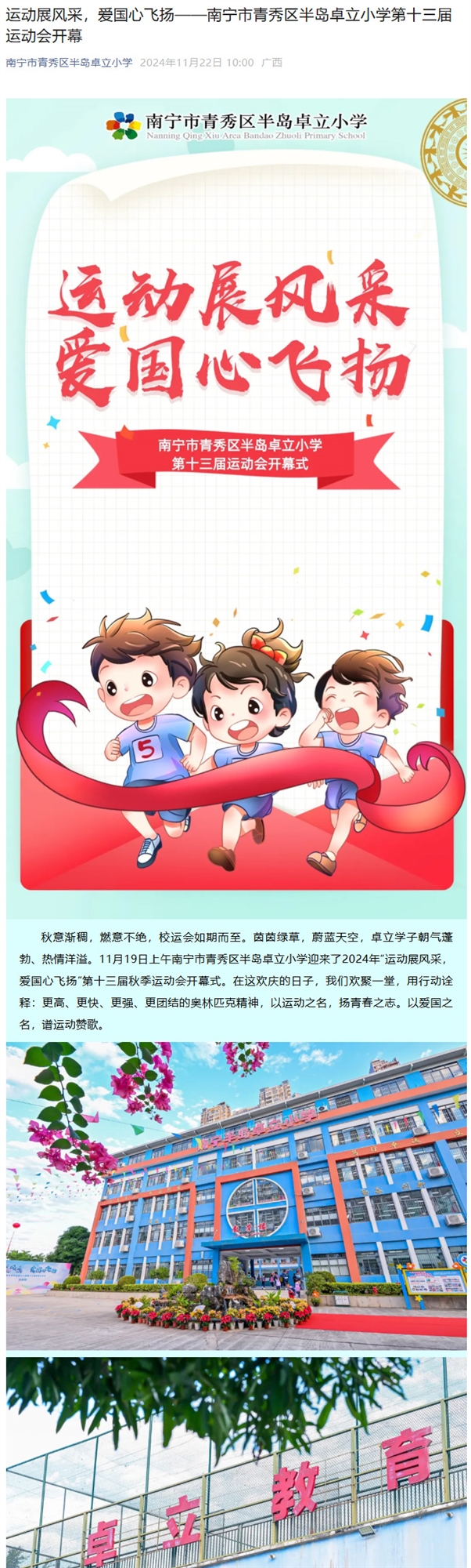 运动展风采,爱国心飞扬——南宁市青秀区半岛卓立小学第十三届运动会开幕