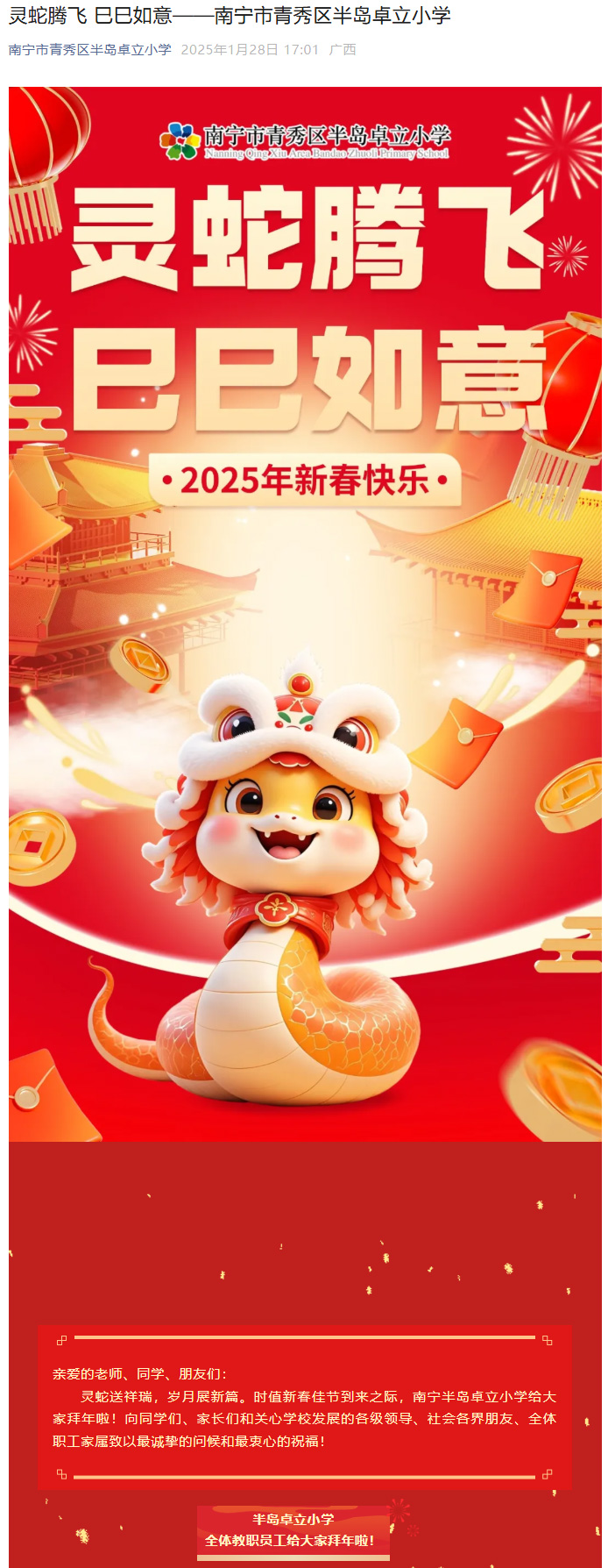 灵蛇腾飞 巳巳如意——南宁市青秀区半岛卓立小学