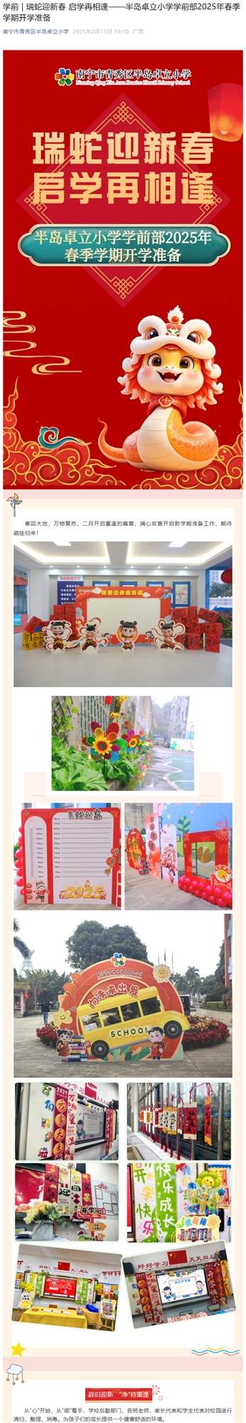 学前 | 瑞蛇迎新春 启学再相逢——半岛卓立小学学前部2025年春季学期开学准备