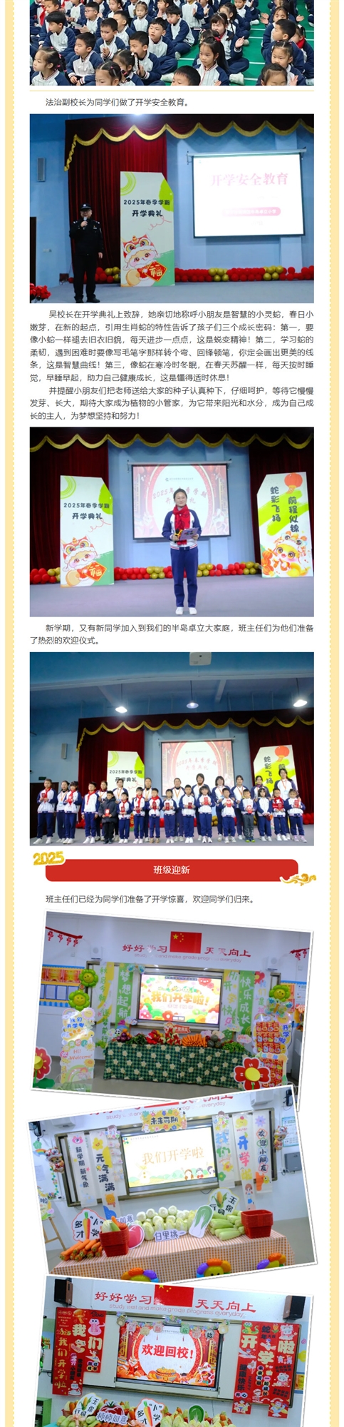 学前 | 巳巳呈祥启新篇——半岛卓立小学学前部2025年春季学期开学第一天系列活动