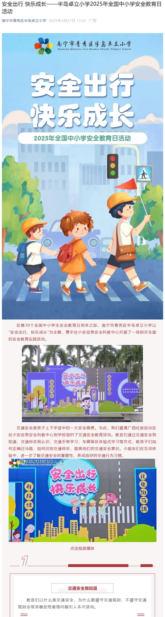 安全出行 快乐成长——半岛卓立小学2025年全国中小学安全教育日活动
