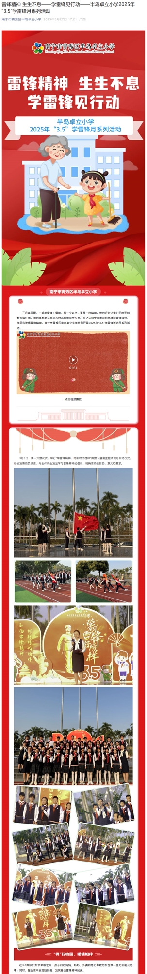 雷锋精神 生生不息——学雷锋见行动——半岛卓立小学2025年“3.5”学雷锋月系列活动
