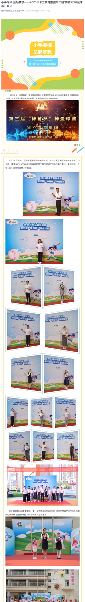 小手挥棒 垒起梦想——2025年卓立教育集团第三届“棒苗杯”棒垒球赛开幕式