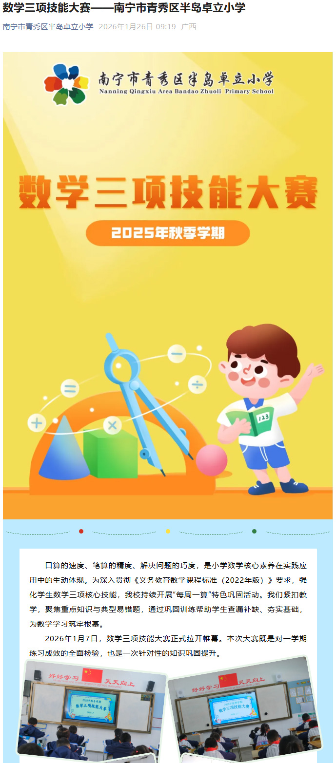 数学三项技能大赛——南宁市青秀区半岛卓立小学