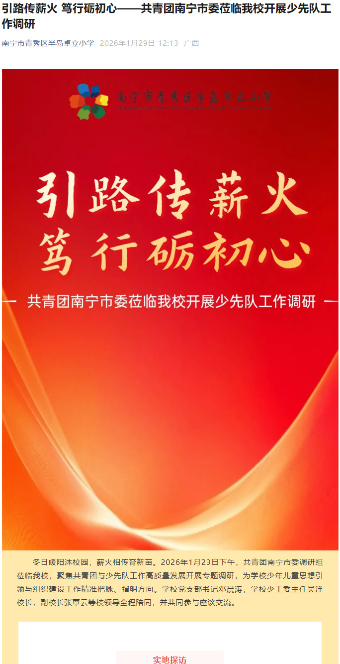 引路传薪火 笃行砺初心——共青团南宁市委莅临我校开展少先队工作调研