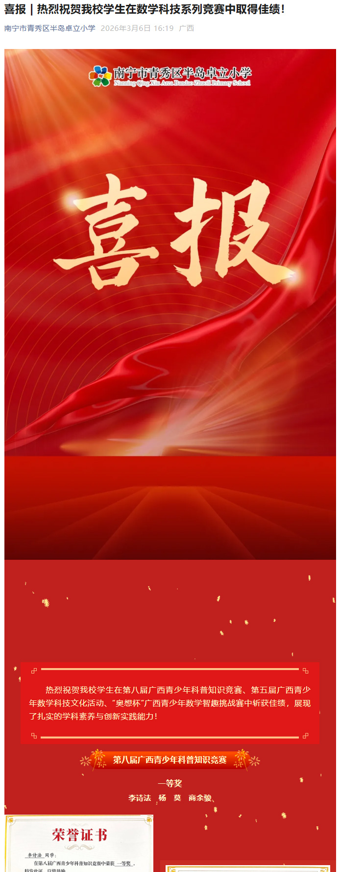 喜报 | 热烈祝贺我校学生在数学科技系列竞赛中取得佳绩!