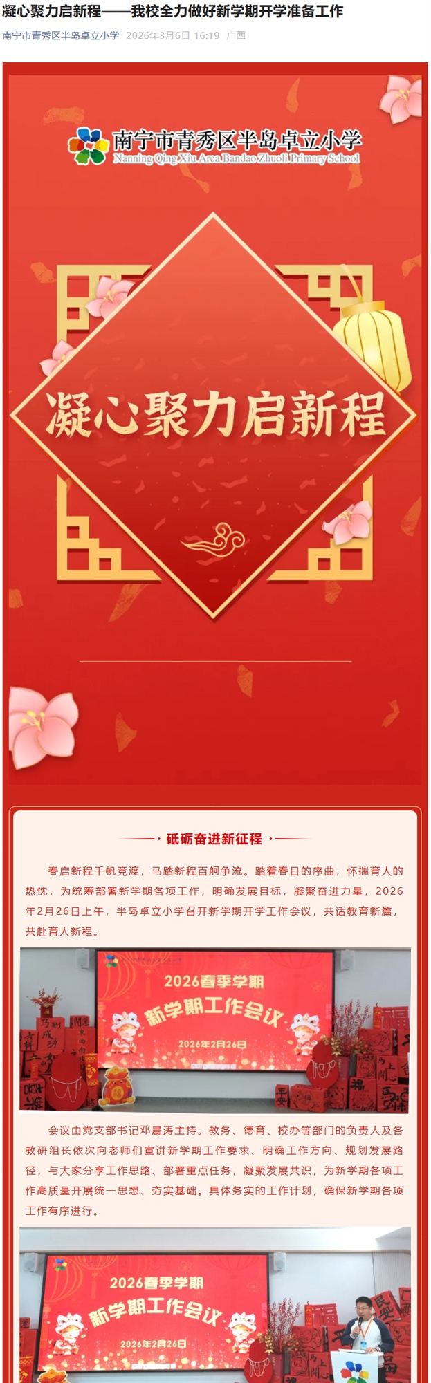 同心共育向未来 携手同行启新程——2026年春季学期半岛卓立小学家委会议