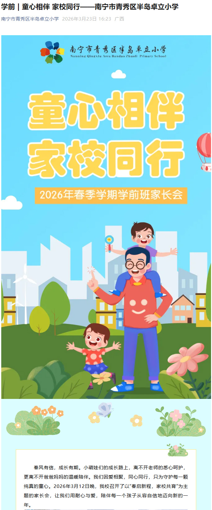 学前 | 童心相伴 家校同行——南宁市青秀区半岛卓立小学