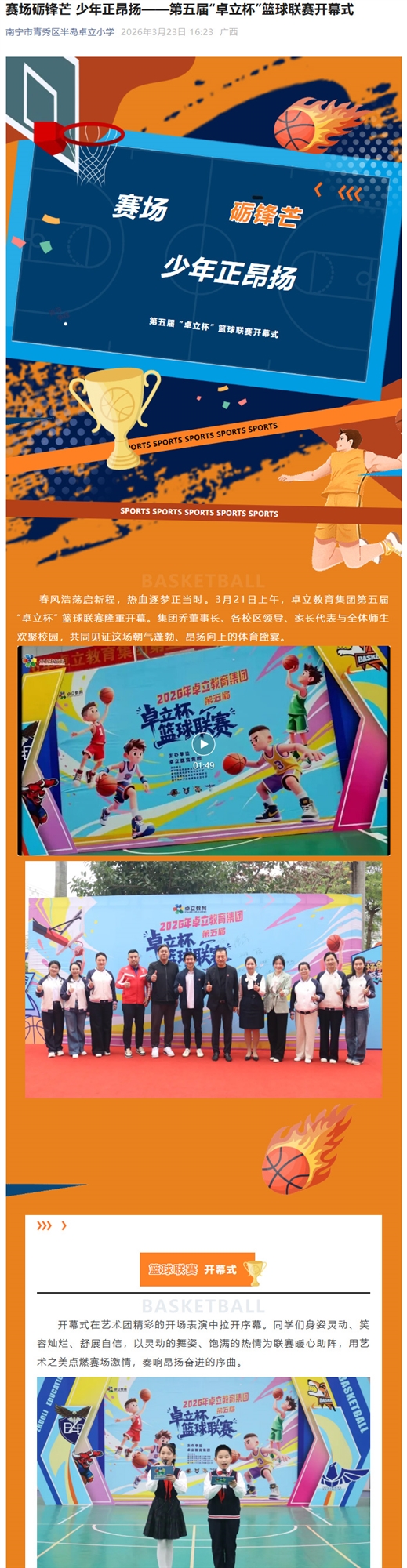 赛场砺锋芒 少年正昂扬——第五届“卓立杯”篮球联赛开幕式
