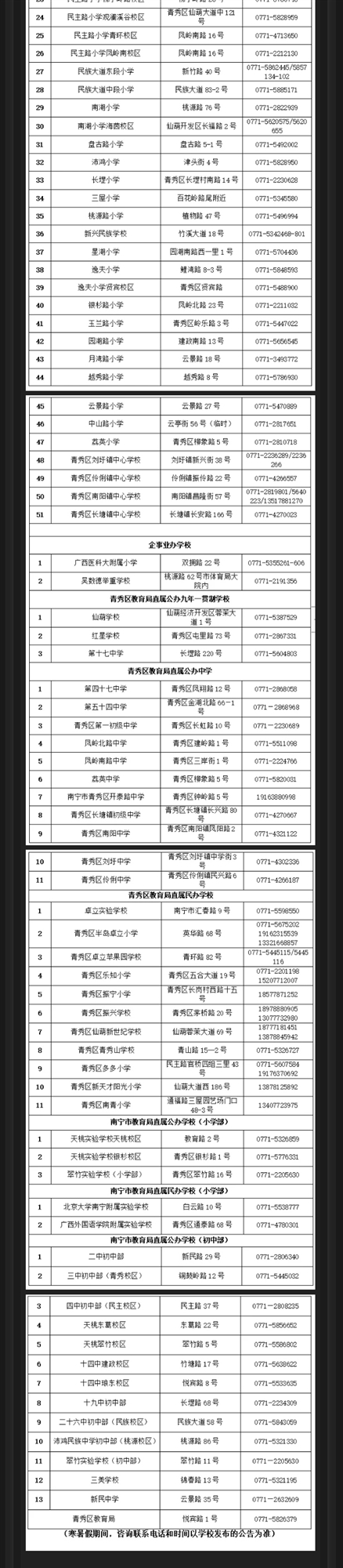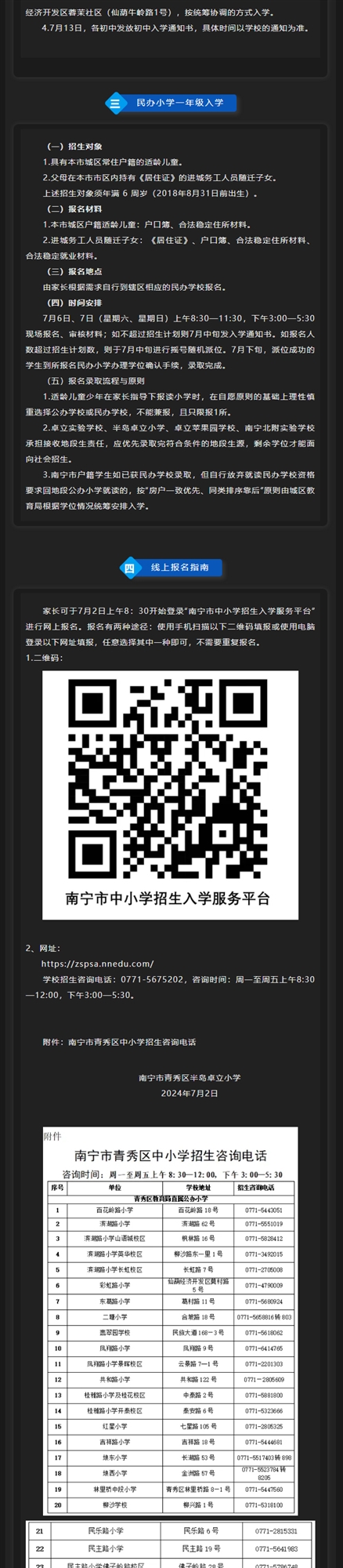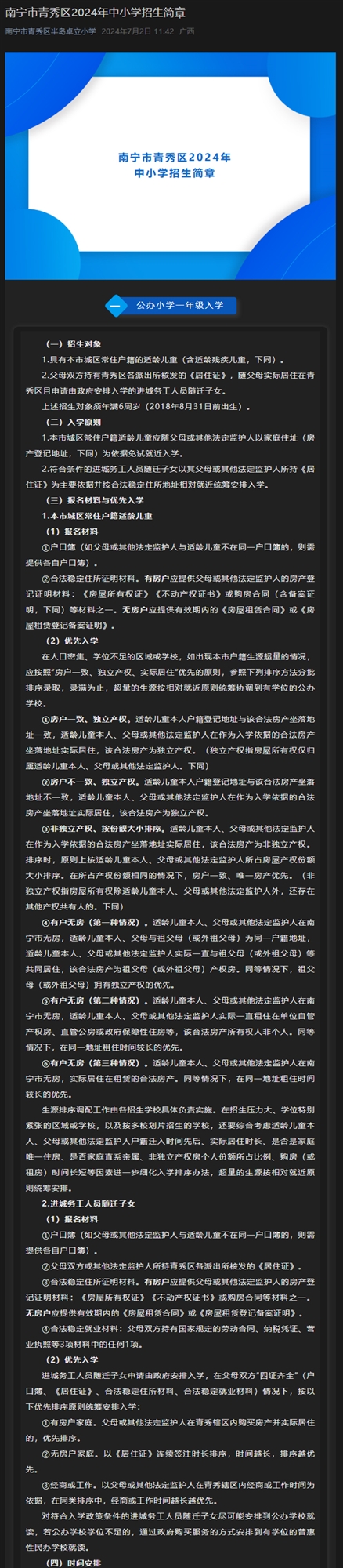 南宁市青秀区2024年中小学招生简章